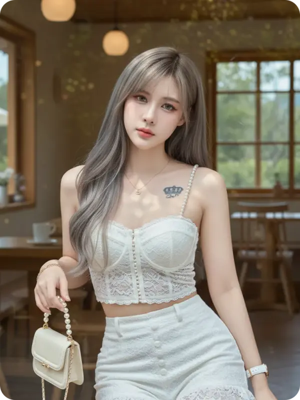 Prompt : Lace Bustier: Café Wait & Blue Tones