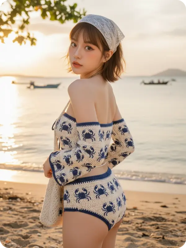 Prompt : Seaside Dream: Crab Crochet Bikini Portrait