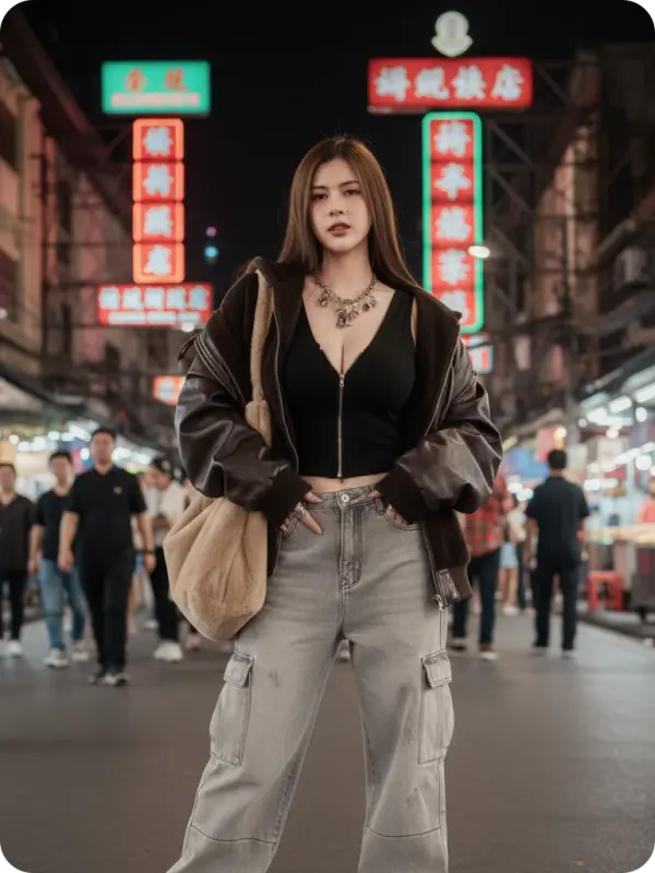 Prompt : Y2K Grunge: Yaowarat Night Fashion
