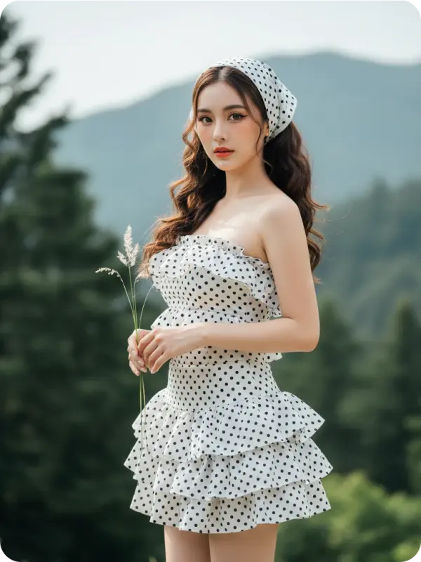 Prompt : Polka Dot Chic: Mountain Breeze & Sweet Gaze